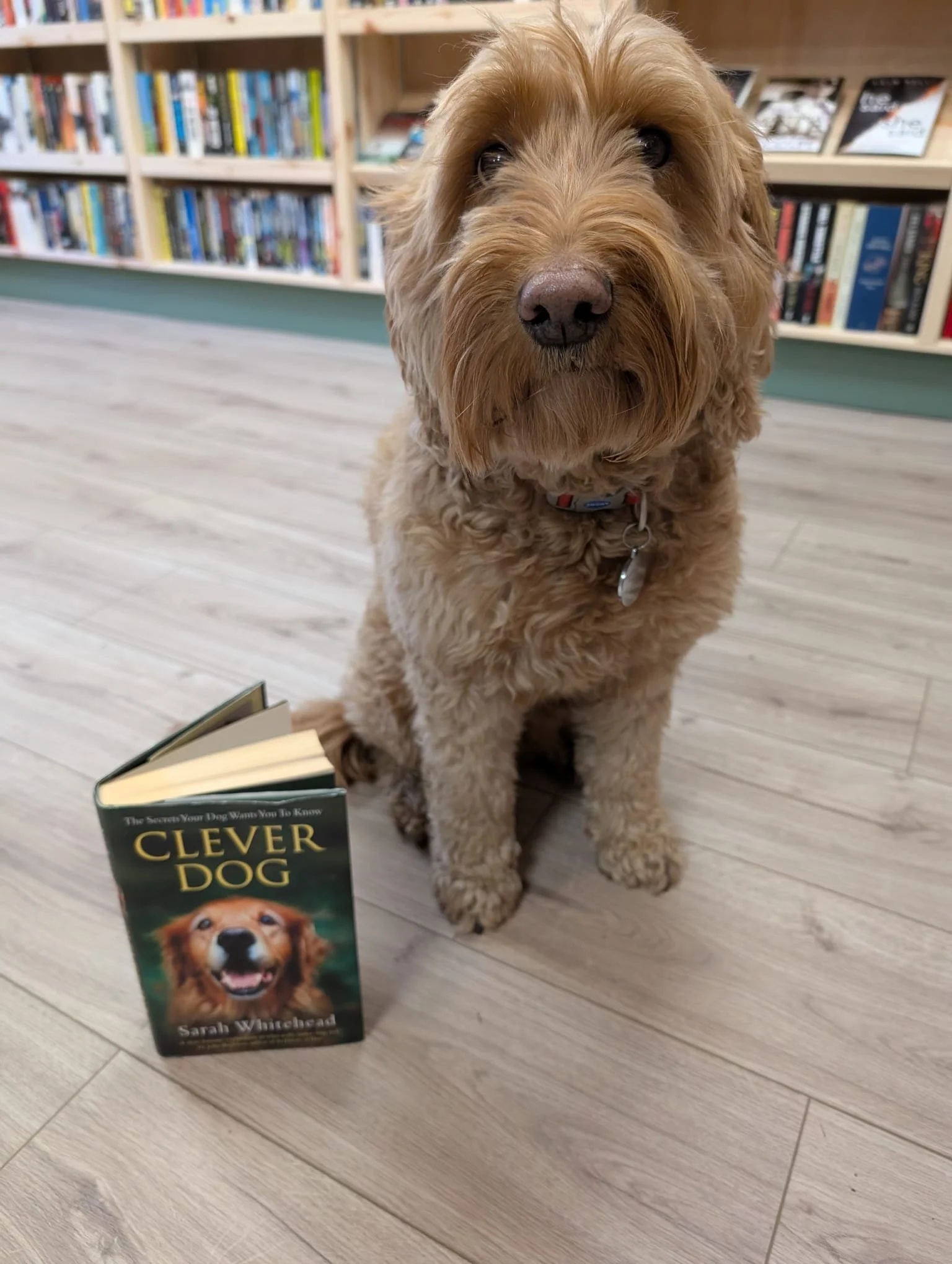 This is my dog, Amber. She is often in the shop with me in the afternoons. This week she has chosen her 'Book of the Week' - Clever Dog by Sarah Whitehead.